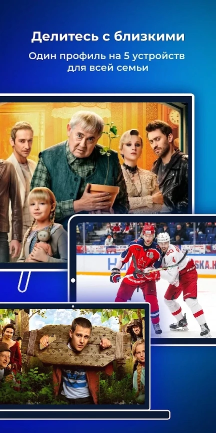 - ✅ Мультиплатформенность – смотрите на смартфоне, планшете, Smart TV или компьютере.